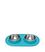 The non-slip silicone base prevents damage to your floors and holds 2 stainless steel bowls in place for your mutt. Contain any further messes with the wide lip and raised edge border.