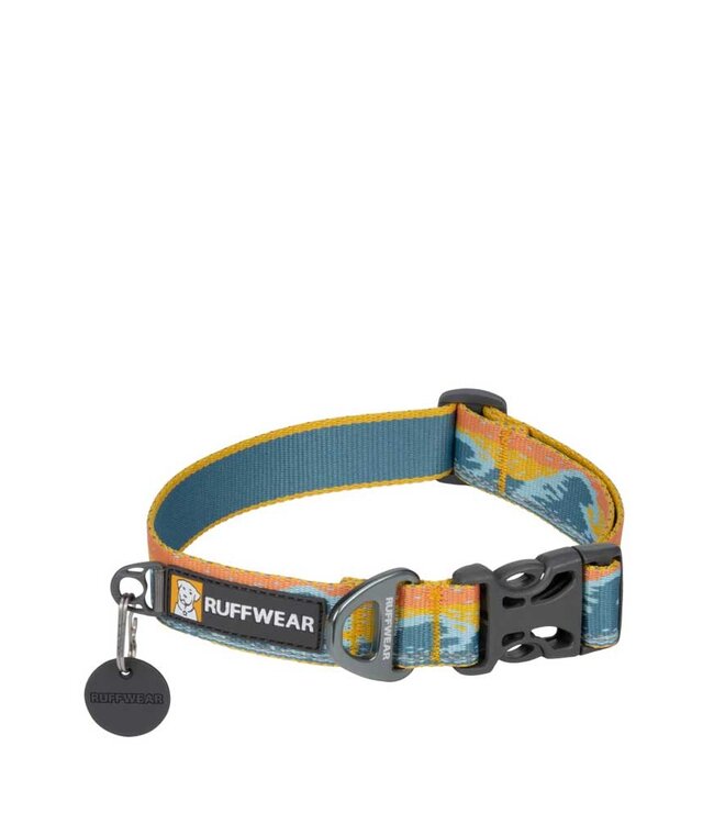 The Crag Collar is packed full of Ruffwear's essential collar features: an aluminum V-ring, separate ID tag attachment point, and a silicone tag silencer.